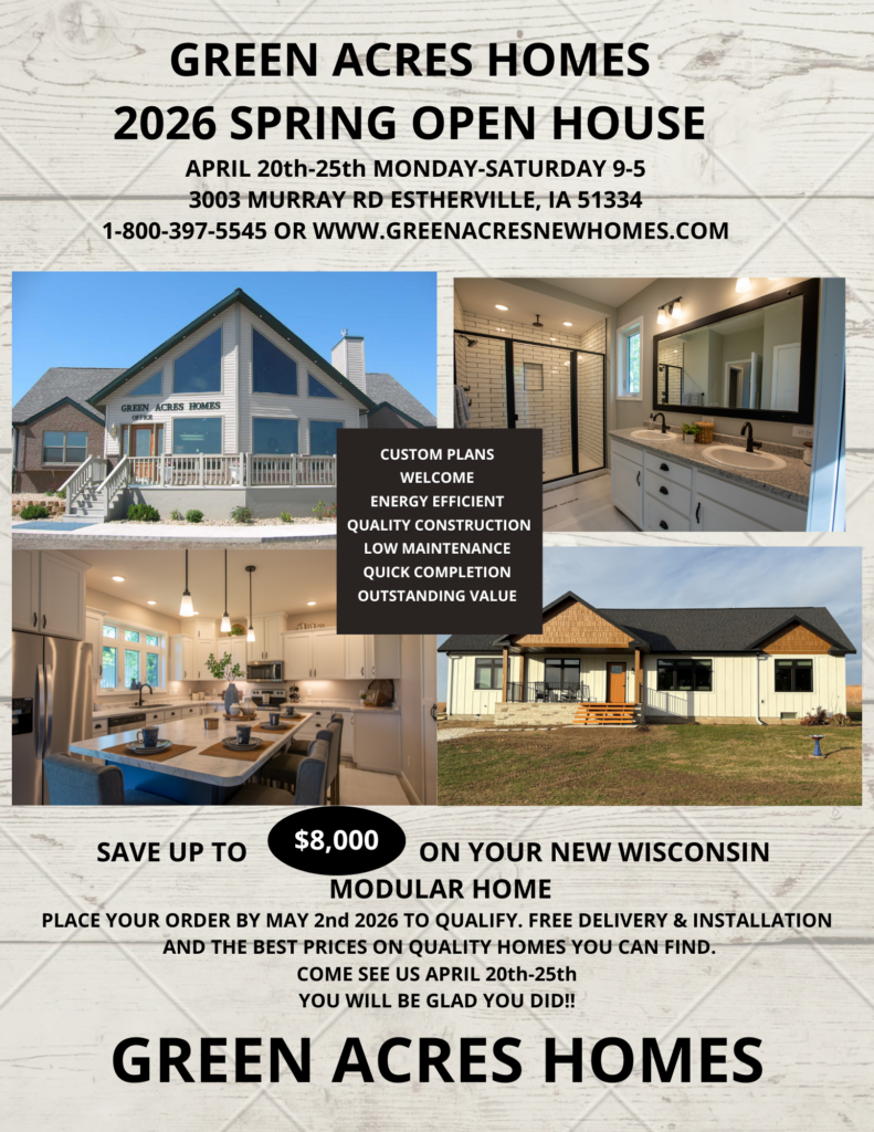 We were in the market for a manufactured home for a lake place. After visiting with no less than 5 manufactured home builders within the region, we found Green Acres Homes. We were immediately impressed with the quality, available floor plans, choice of finishes, affordability of their homes…and basically decided to purchase on the spot. The Green Acres team was a pleasure to work with, keeping us updated all along the way, and the home delivery date exceeded our expectations. They even connected me to a contractor they often work with to design and build an attached garage and sunroom. We are very pleased with our decision to have chosen Green Acres Homes!.